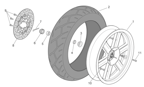 Πίσω τροχός γυμνός γκρι για Sport city 125-200-250 e3 2006-2008 (apac, emea, nafta)